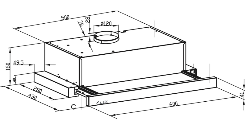 LEX HIDE G 600 GREY Вытяжка телескопическая
