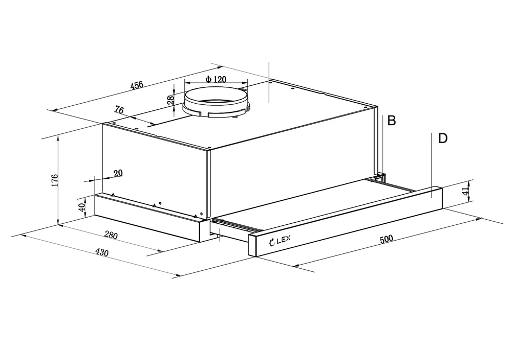 вытяжка встраиваемая телескопическая, 50 см, 550 м3/ч, черный