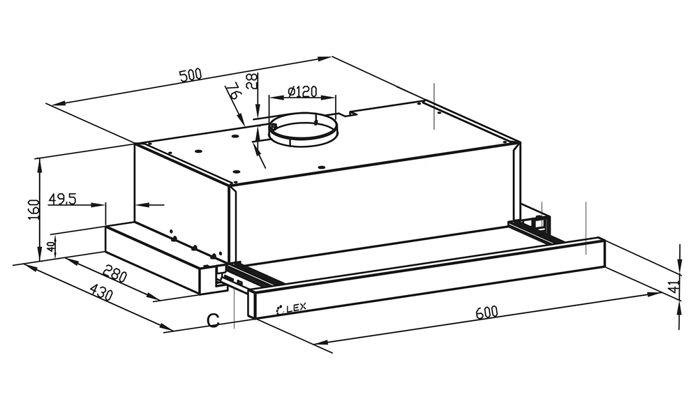 вытяжка встраиваемая телескопическая, 60 см, 550 м3/ч, черный