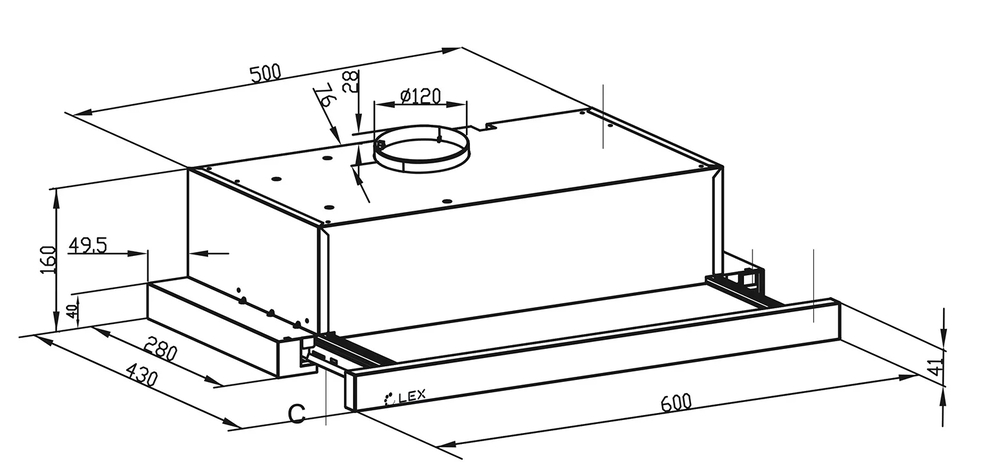 вытяжка встраиваемая телескопическая, 60 см, 550 м3/ч, белый