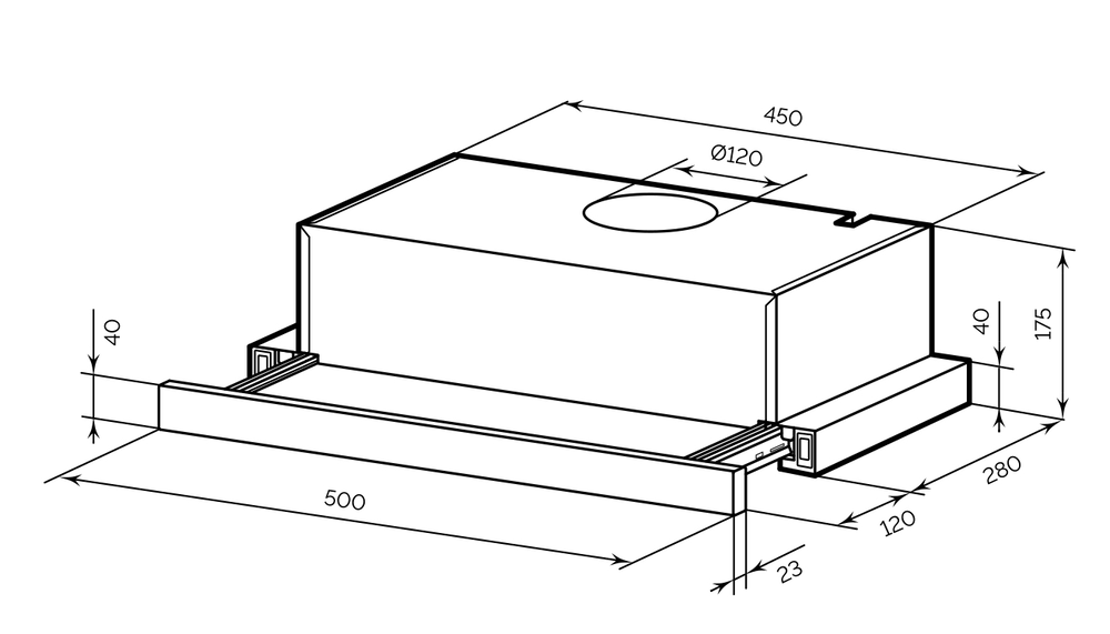 вытяжка встраиваемая телескопическая, 50 см, 600 м3/ч, белый