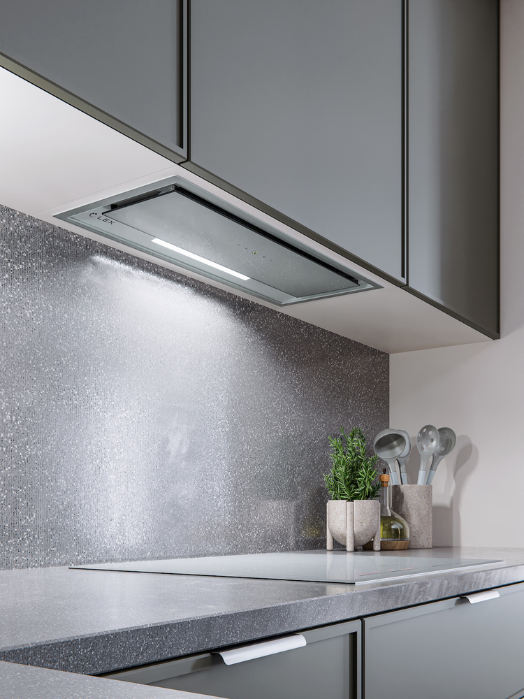 вытяжка встраиваемая в подвесной шкаф, 52 см, 1050 м3/ч, серый
