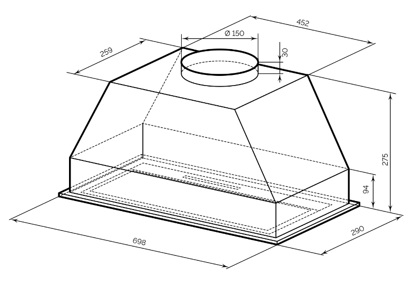 Функциональность и освещение: Рабочую зону освещает яркая и экономичная LED-лампа мощностью 3,5 Вт. Вытяжка поддерживает оба режима работы: отвод воздуха и рециркуляцию. В комплекте идет моющийся алюминиевый фильтр; угольные фильтры доступны опционально.