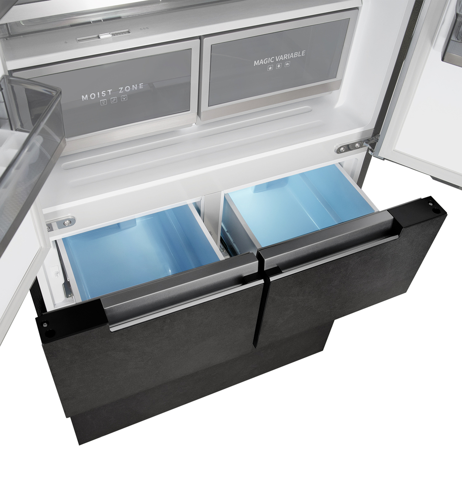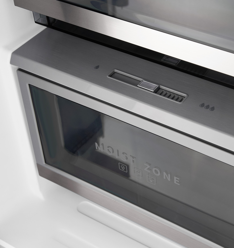 В зоне свежести температура держится на уровне 0°С, так продукты дольше остаются свежими. Подходит для свежего мяса, рыбы, фруктов, овощей.
