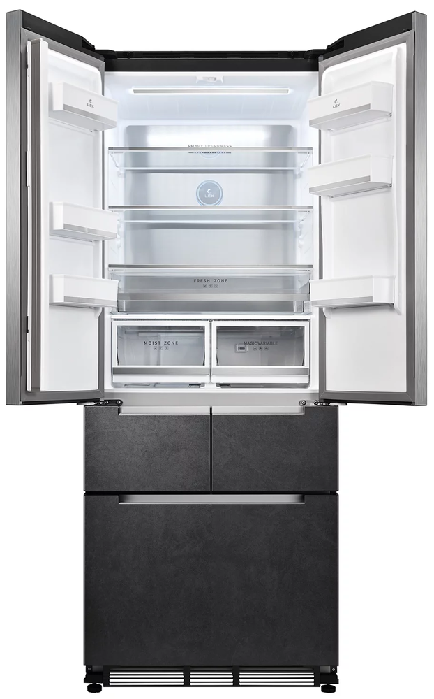 холодильник-морозильник отдельностоящий, 413 л, класс энергопотребления А++, No Frost, 77х60х193,5 см, каменно-серая стеклянная дверца