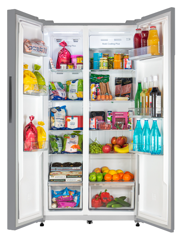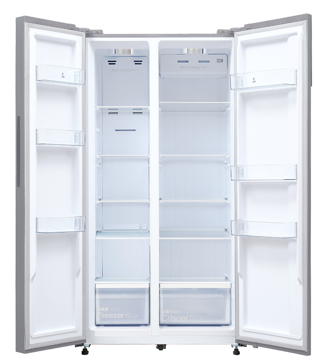 холодильник-морозильник Side-by-Side отдельностоящий, 466 л, класс энергопотребления А+, No Frost, 91х60х183,6 см, темно серебристый металл