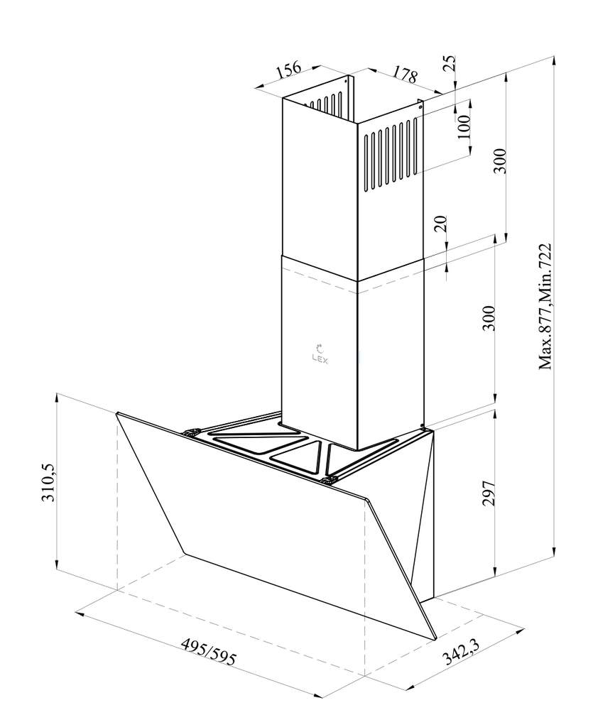 вытяжка наклонная, 50 см, 700 м3/ч, белое стекло