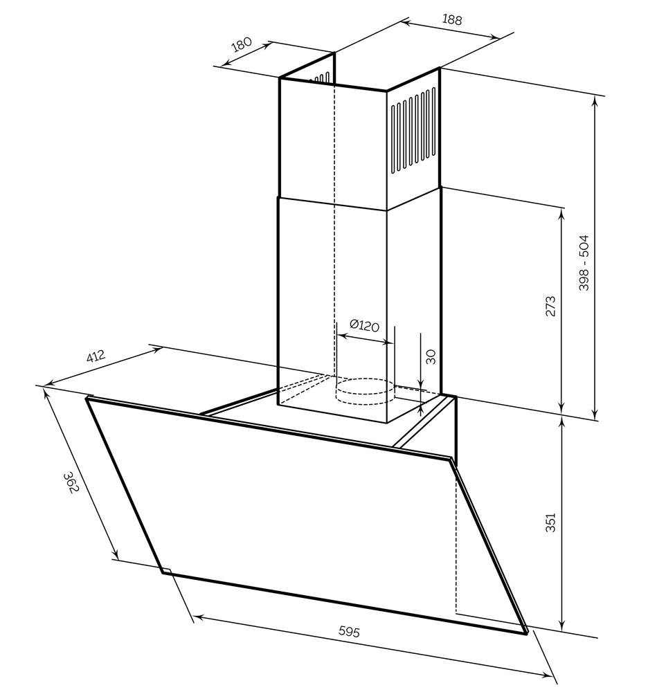 вытяжка наклонная, 60 см, 1000 м3/ч, белое стекло