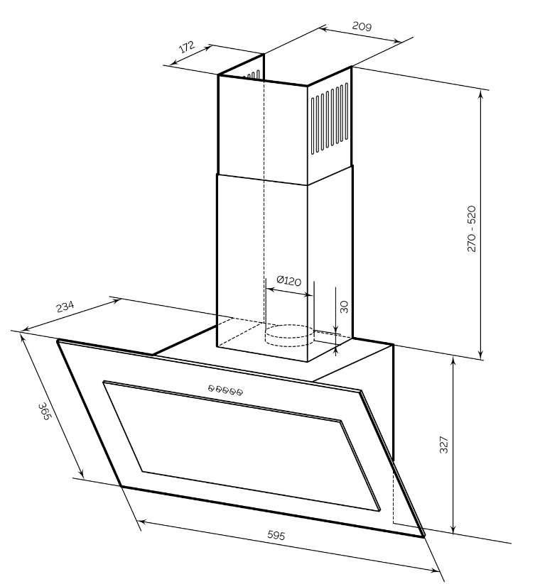 вытяжка наклонная, 60 см, 650 м3/ч, белый