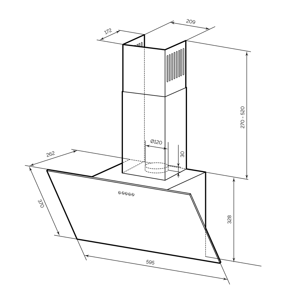вытяжка наклонная, 60 см, 590 м3/ч, белое стекло