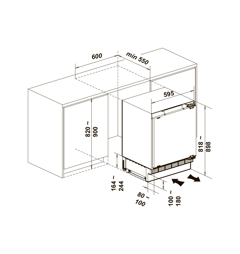 холодильник однокамерный встраиваемый, 121 л, класс энергопотребления А+, капельная система размораживания, 59,5х54,5х81,8 см