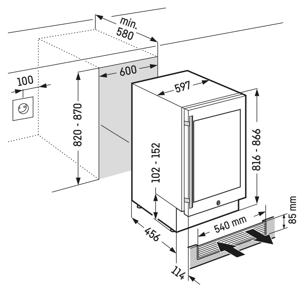 винный шкаф встраиваемый, 110 л, класс энергопотребления А, 59,7x57,5x81.6 см, нержавеющая сталь