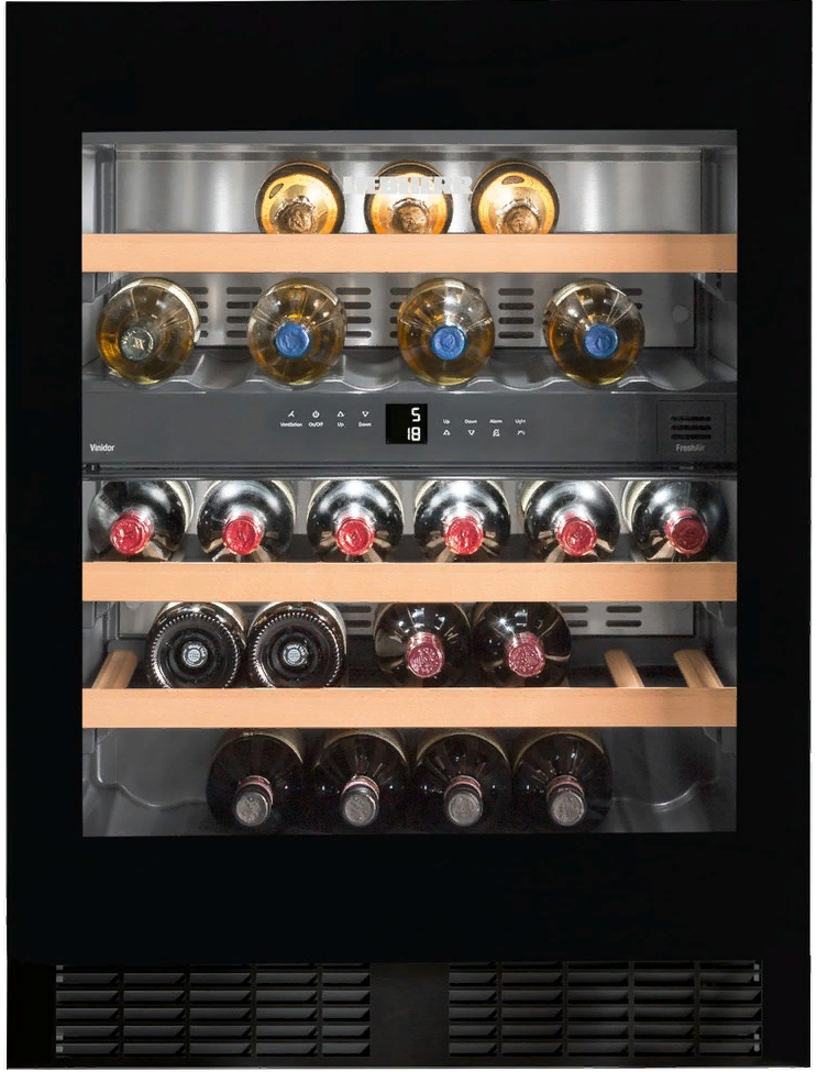 винный шкаф встраиваемый, 94 л, класс энергопотребления А, 59,7x57,7x81,8 см, черный/серебристый
