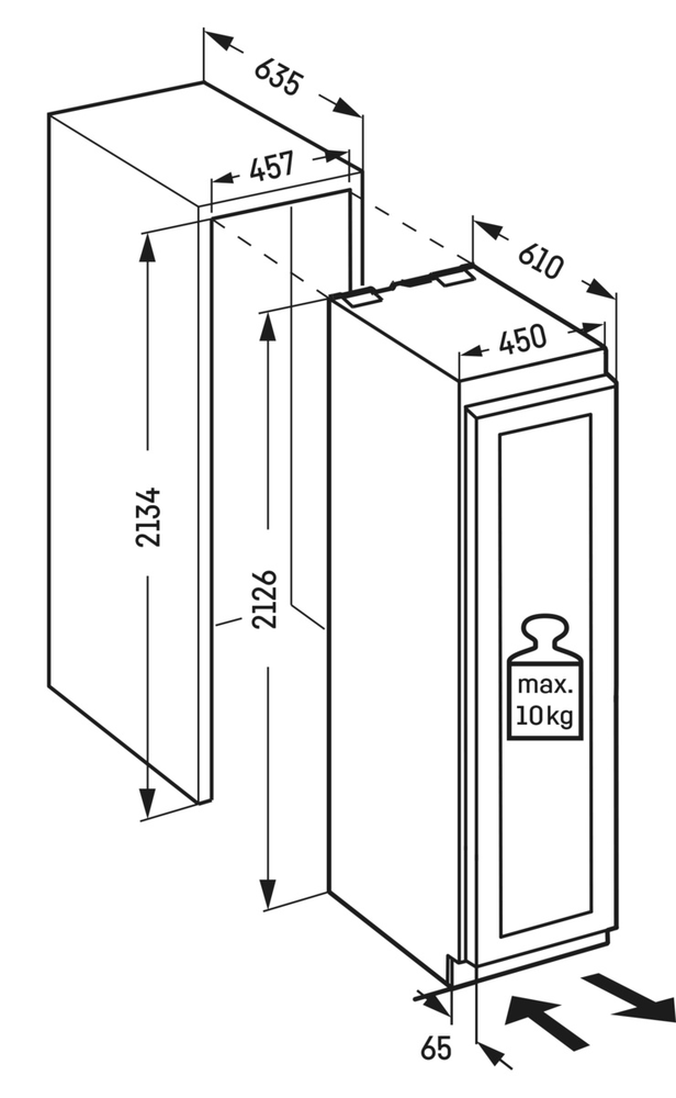 винный шкаф встраиваемый, 232 л, класс энергопотребления А, 45х61х212,6 см