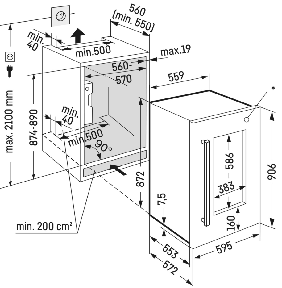 винный шкаф встраиваемый, 97 л, класс энергопотребления G, 55,7x55,3x87,2 см, нержавеющая сталь