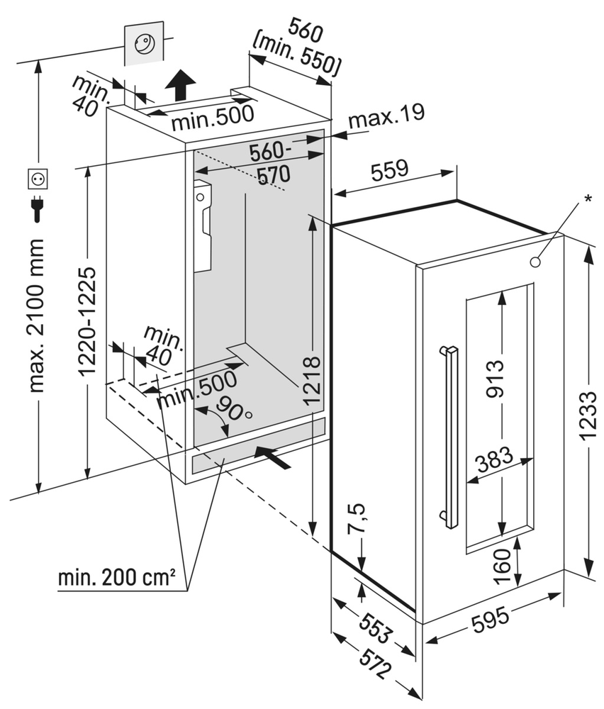 винный шкаф встраиваемый, 158 л, класс энергопотребления А, 55,7х55,3х121,8 см