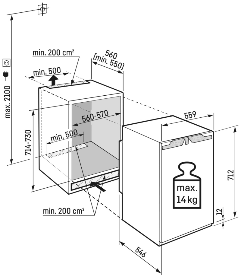 морозильник встраиваемый, 65 л, класс энергопотребления D, No Frost, 55,9х54,6х71,2 см
