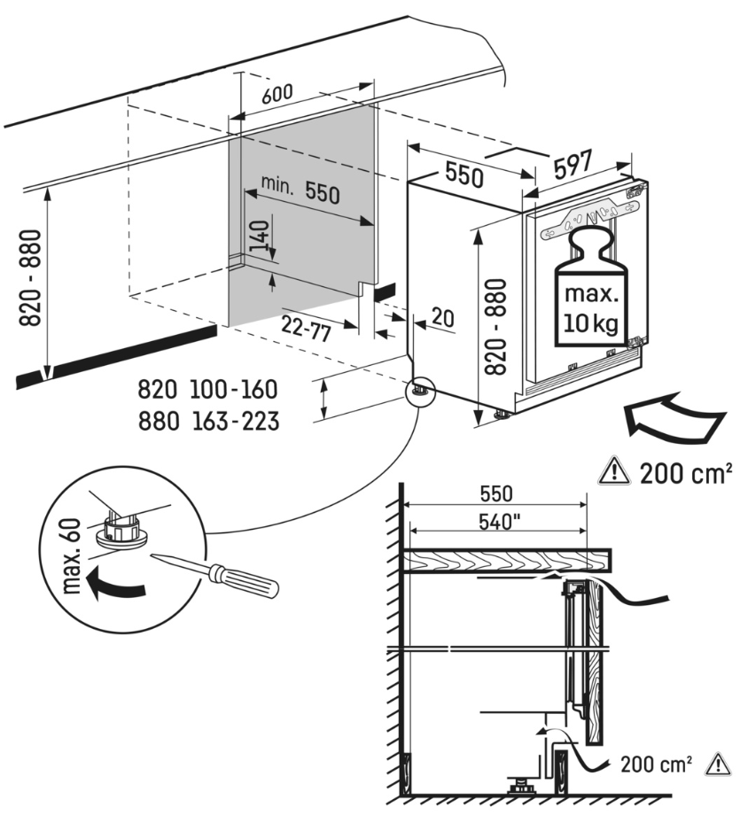 холодильник однокамерный встраиваемый, 119 л, класс энергопотребления А++, ручная система размораживания, 60x55x82 см