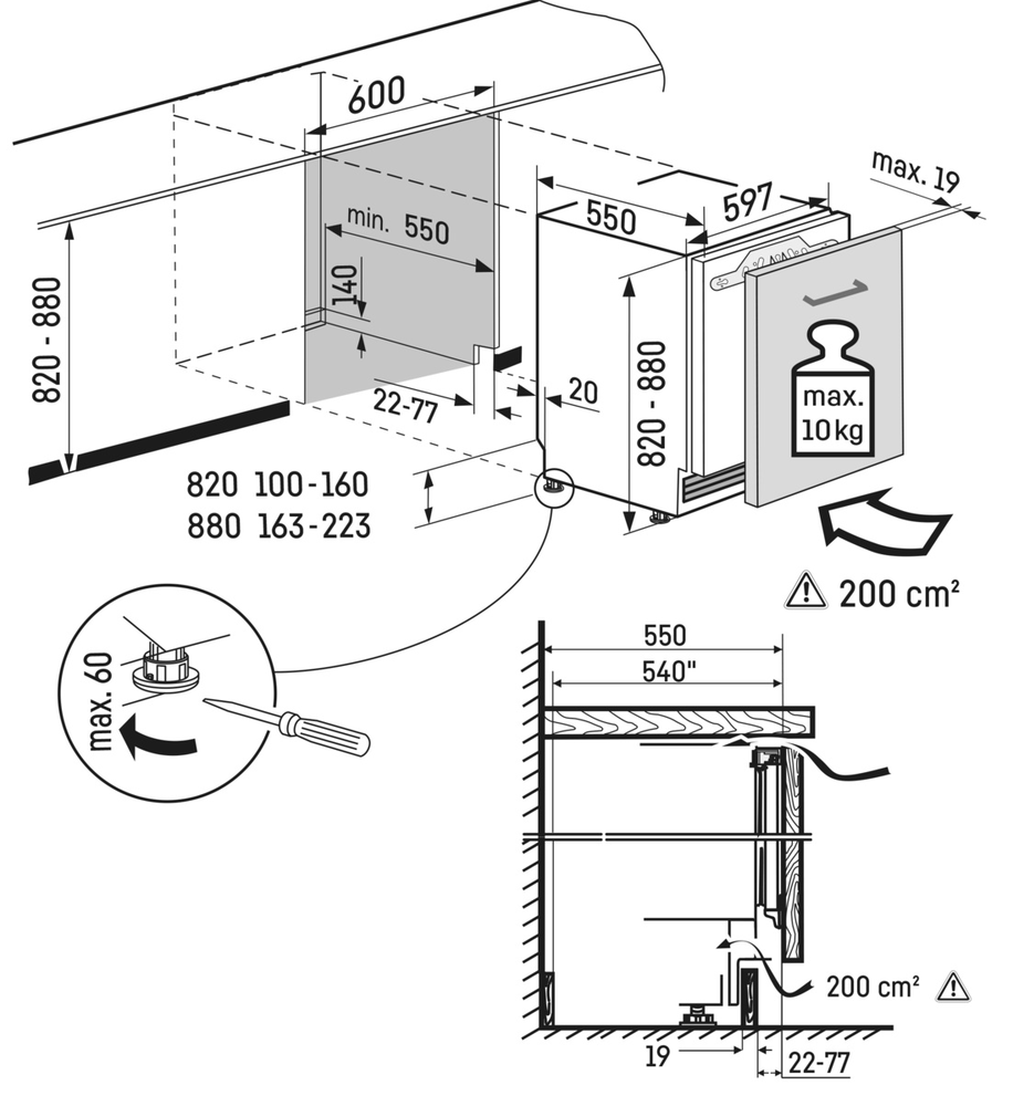 Ширина корпуса электроприбора. Особенно важно точно знать точную допустимую ширину для встраиваемой техники.