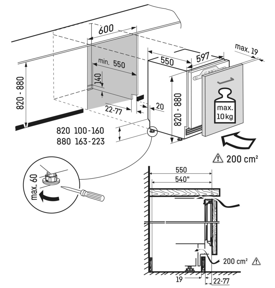 Ширина корпуса электроприбора. Особенно важно точно знать точную допустимую ширину для встраиваемой техники.