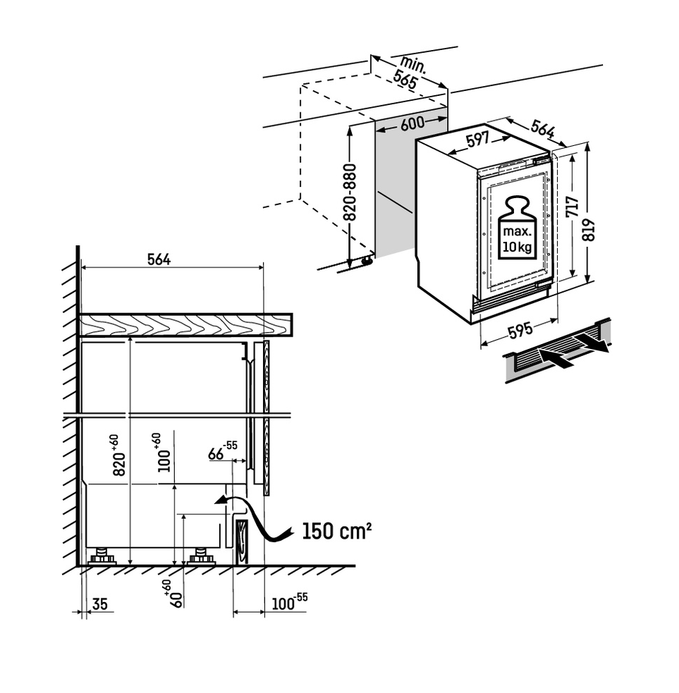 винный шкаф встраиваемый, 93 л, 59,7х56,4х81,9 см