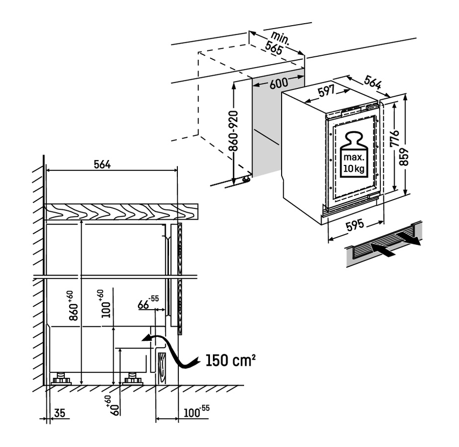 винный шкаф встраиваемый, 102 л, 59,7х56,4х85,9 см