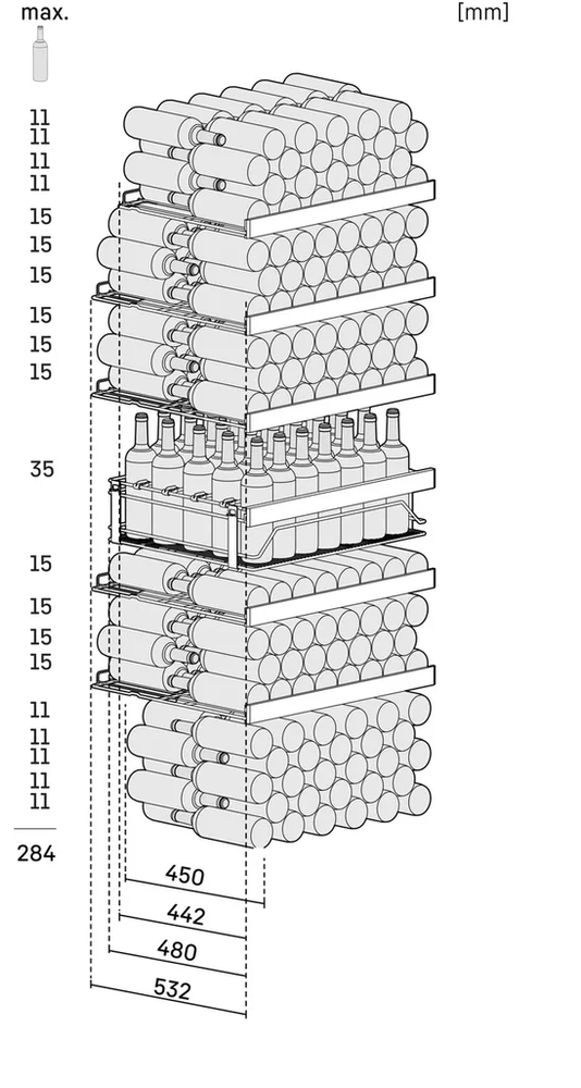 Вместимость или емкость винного шкафа определяется количеством установленных в нем ячеек для бутылок со стандартным объемом 0,75 л.