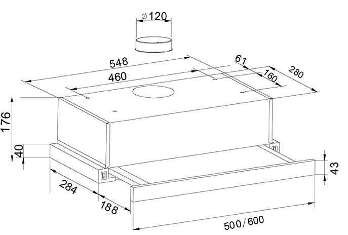 вытяжка встраиваемая телескопическая, 50 см, 500 м3/ч, белый