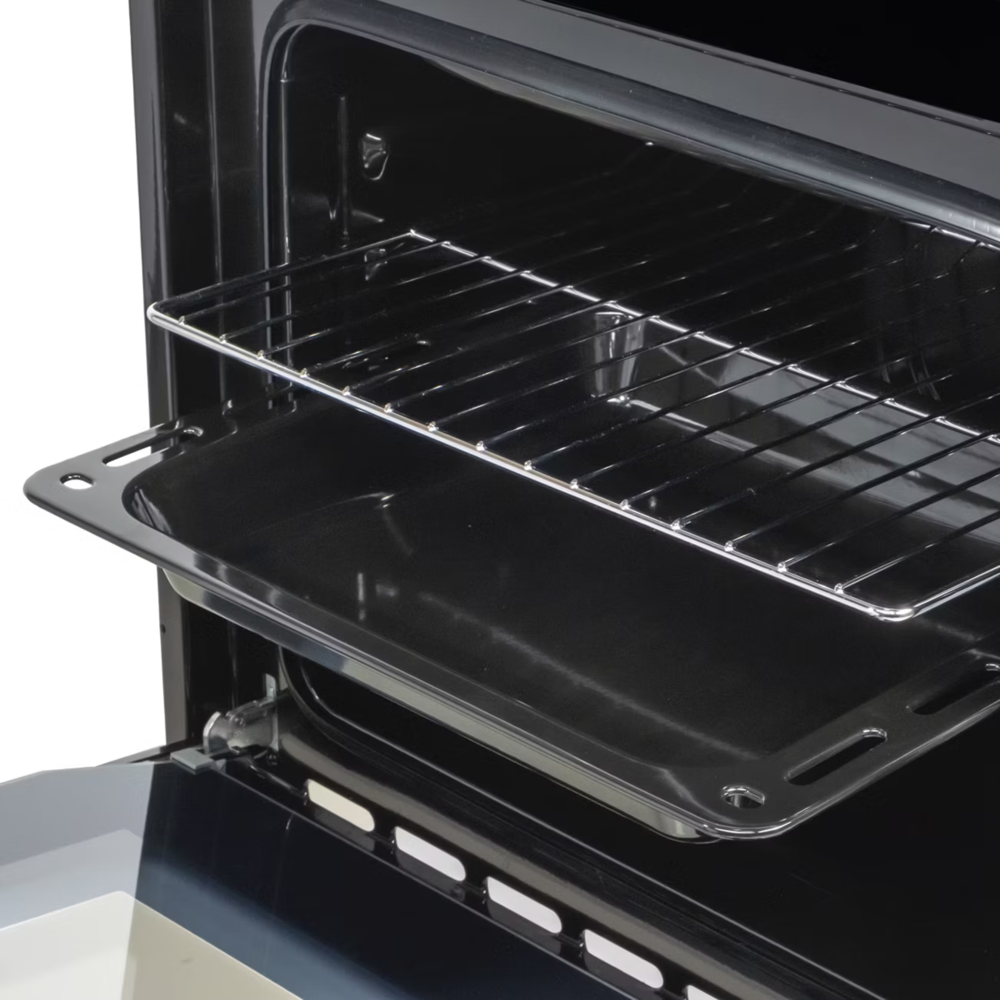 Выдвижные металлические полозья, которые легко выезжают за пределы камеры духовки вместе с противнем, не давая ему упасть.