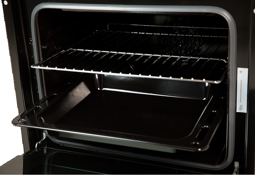 Выдвижные металлические полозья, которые легко выезжают за пределы камеры духовки вместе с противнем, не давая ему упасть.