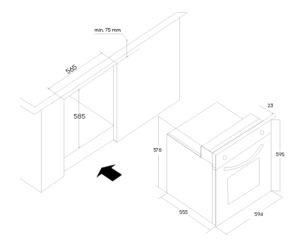 Ширина корпуса электроприбора. Особенно важно точно знать точную допустимую ширину для встраиваемой техники.