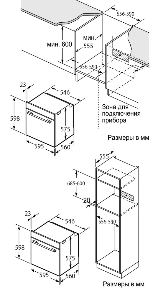 Ширина корпуса электроприбора. Особенно важно точно знать точную допустимую ширину для встраиваемой техники.