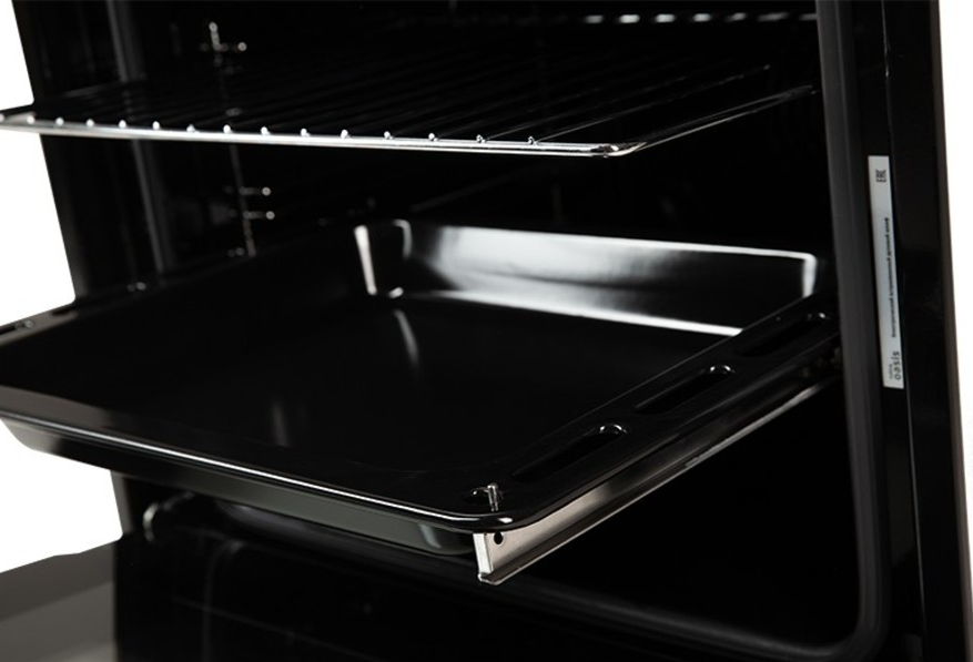 Выдвижные металлические полозья, которые легко выезжают за пределы камеры духовки вместе с противнем, не давая ему упасть.