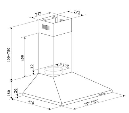 вытяжка пристенная, 50 см, 650 м3/ч, белый