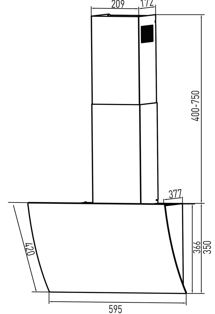 вытяжка наклонная, 60 см, 1000 м3/ч, черный
