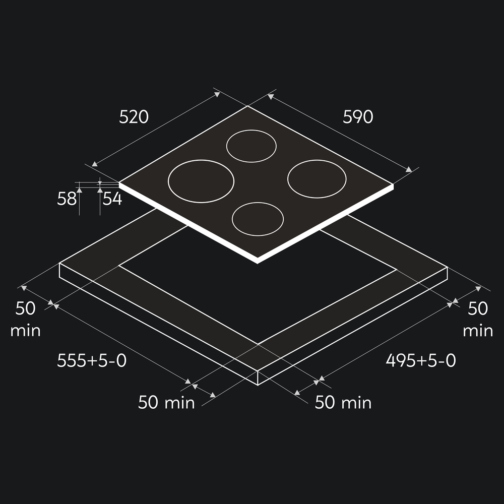 поверхность варочная стеклокерамическая индукционная, 60 см, черный