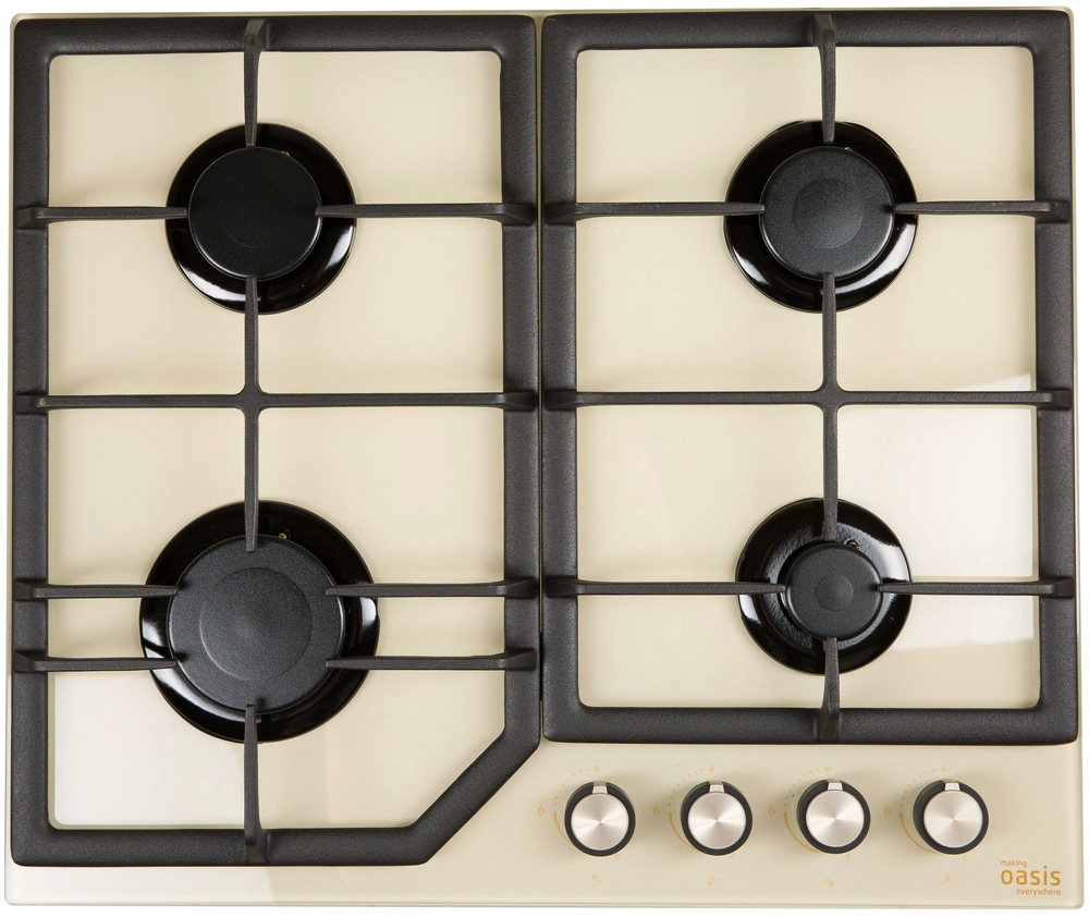 поверхность газовая, 60 см, газ на стекле, 4 конфорки, решетки чугунные, бежевый