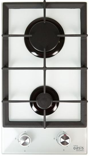поверхность газовая, 30 см, газ на стекле, 2 конфорки, решетки чугунные, белый