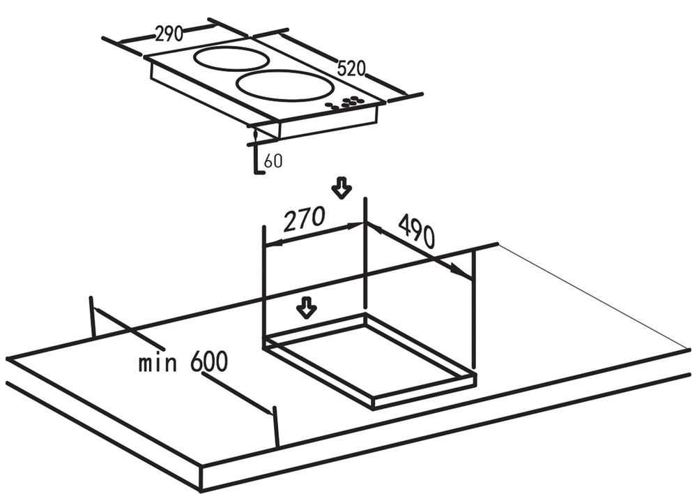 Расположение панели управления варочной поверхностью относительно конфорок. Если панель расположена сбоку, она будет справа.