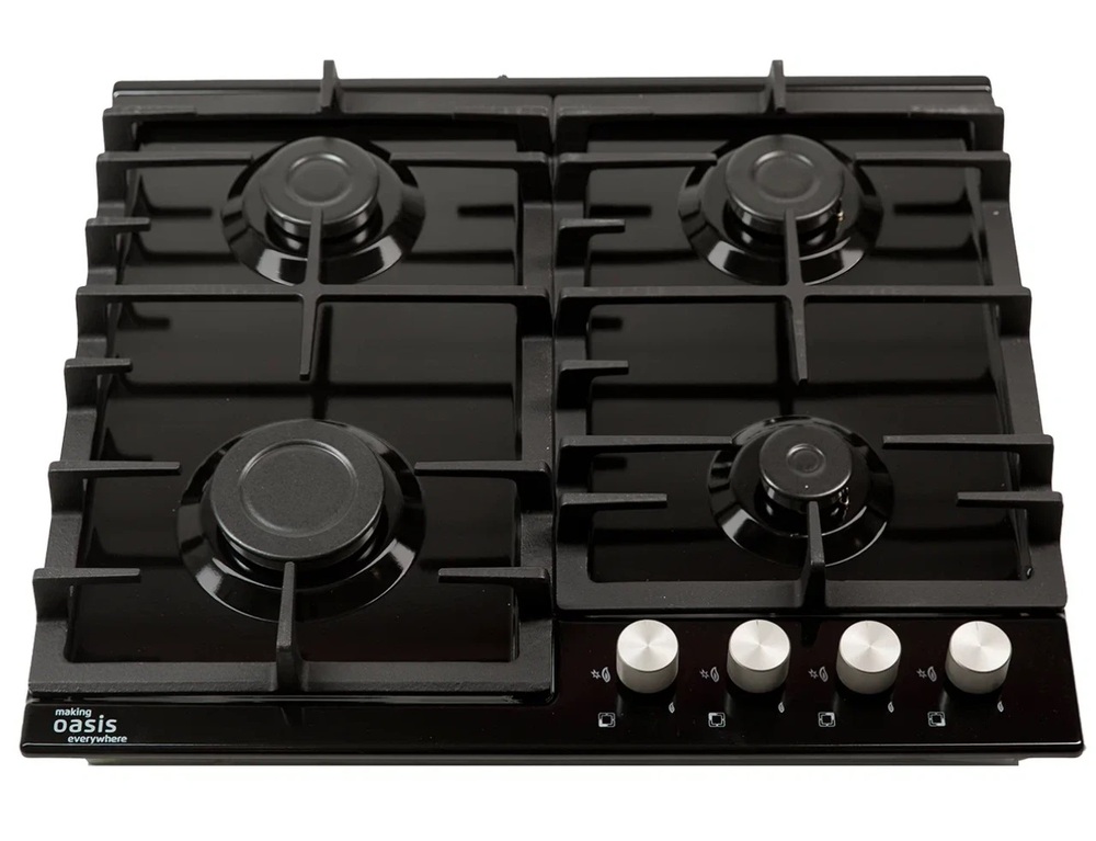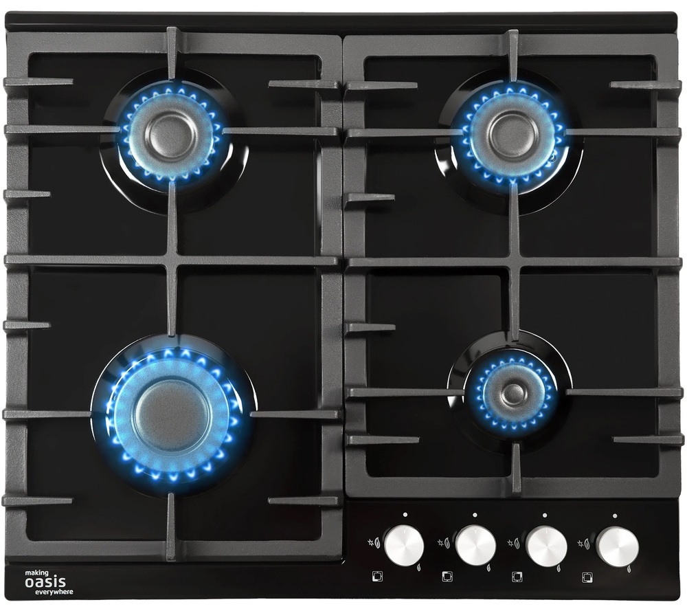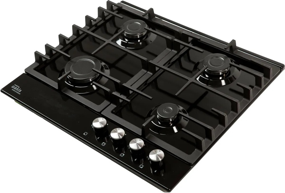 поверхность газовая, 60 см, газ на эмали, 4 конфорки, решетки чугунные, черный
