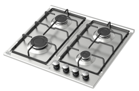 поверхность газовая, 60 см, газ на металле, 4 конфорки, решетки эмалированные, нержавеющая сталь