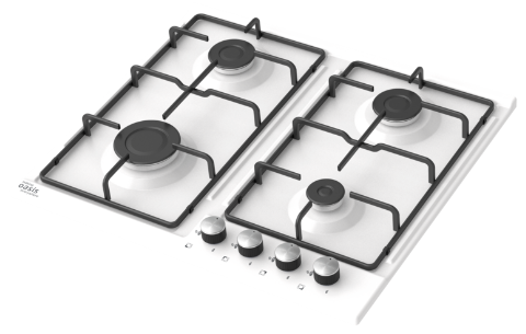 поверхность газовая, 60 см, газ на эмали, 4 конфорки, решетки эмалированные, белый
