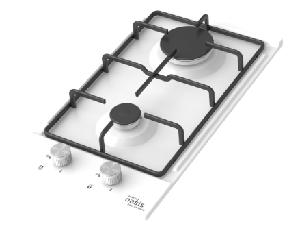 поверхность газовая, 30 см, газ на эмали, 2 конфорки, решетки эмалированные, белый