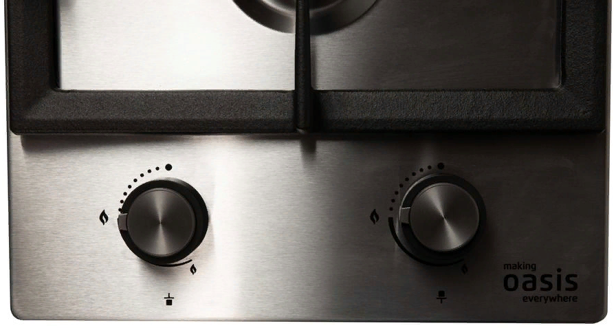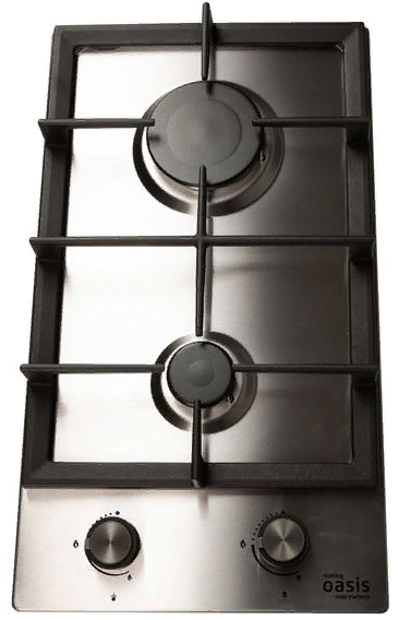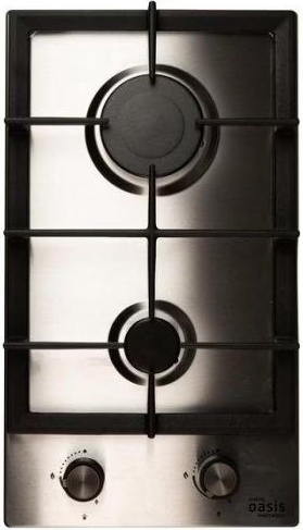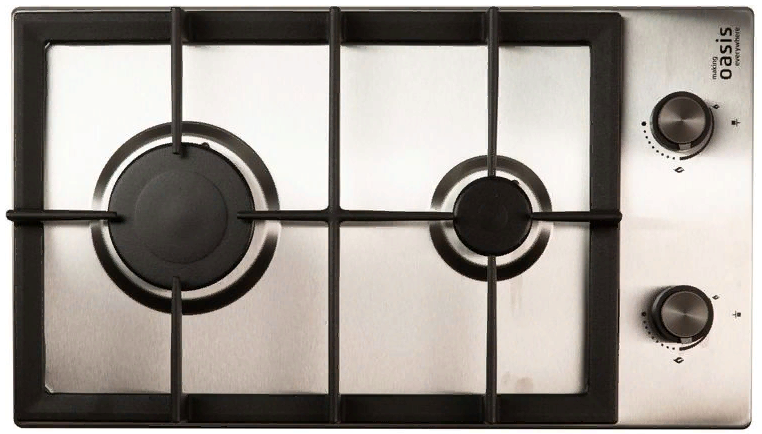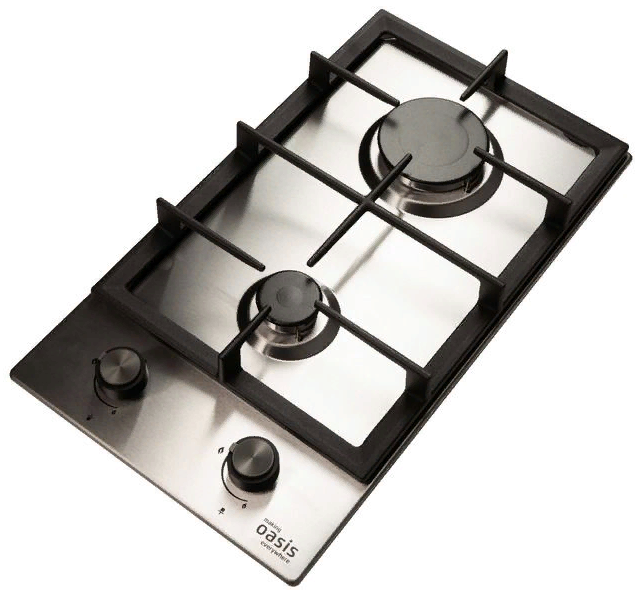 поверхность газовая, 30 см, газ на металле, 2 конфорки, решетки чугунные, нержавеющая сталь