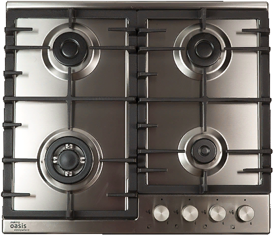 поверхность газовая, 60 см, газ на металле, 4 конфорки, решетки чугунные, нержавеющая сталь