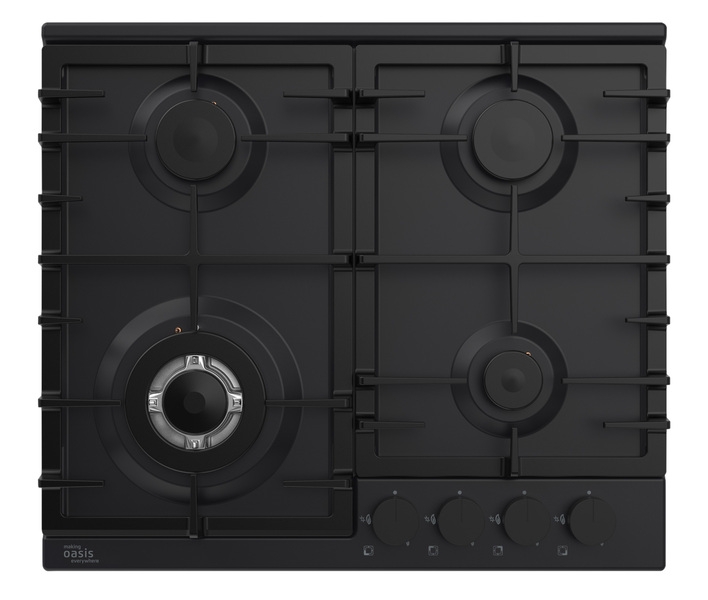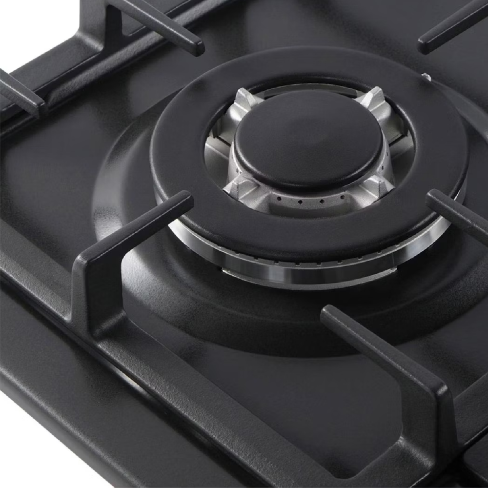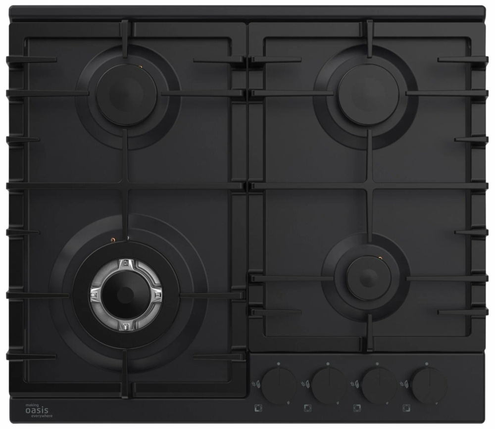 поверхность газовая, 60 см, газ на эмали, 4 конфорки, решетки чугунные, черный