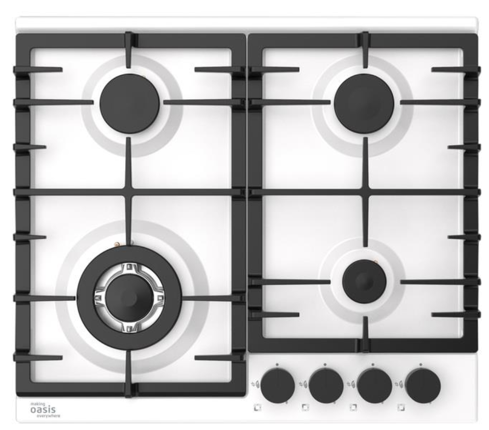 поверхность газовая, 60 см, газ на эмали, 4 конфорки, решетки чугунные, белый