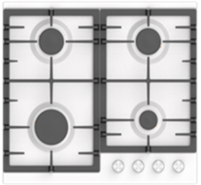 поверхность газовая, 60 см, газ на эмали, 4 конфорки, решетки чугунные, белый