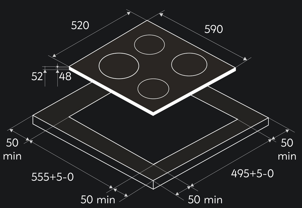 поверхность варочная стеклокерамическая, 60 см, черный