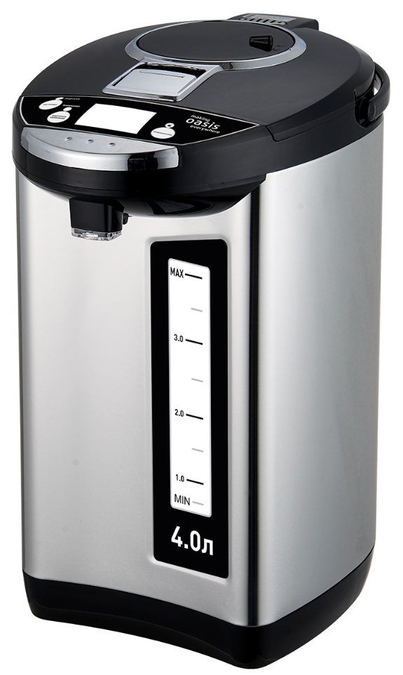 термопот, 4 л, 900 Вт, нержавеющая сталь+черный